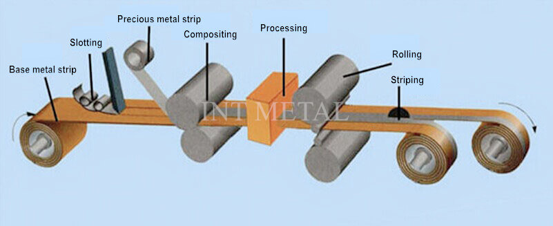 Slissing av uedelt metallbånd- Varm komposittering med edelt metall- Presisjonsrulling- Stripping